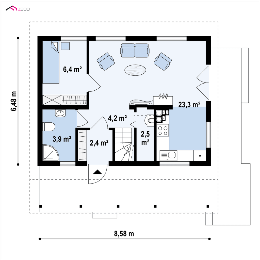 - Minimaalne krundi suurus 15,58 x 14,48 m