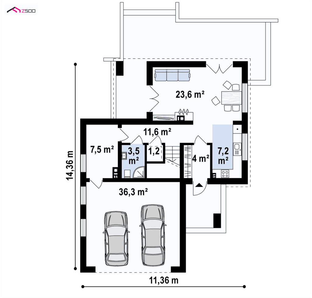 - Garaaži pindala 36,3 m²