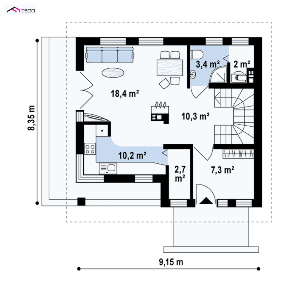 - Minimaalne krundi suurus 16,15 x 16,35 m