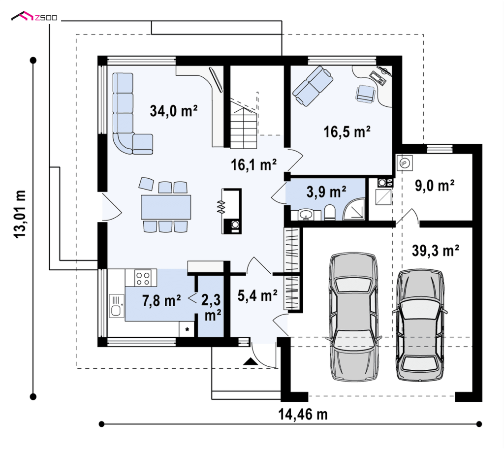 - Minimaalne krundi suurus 21,46 x 21,01 m